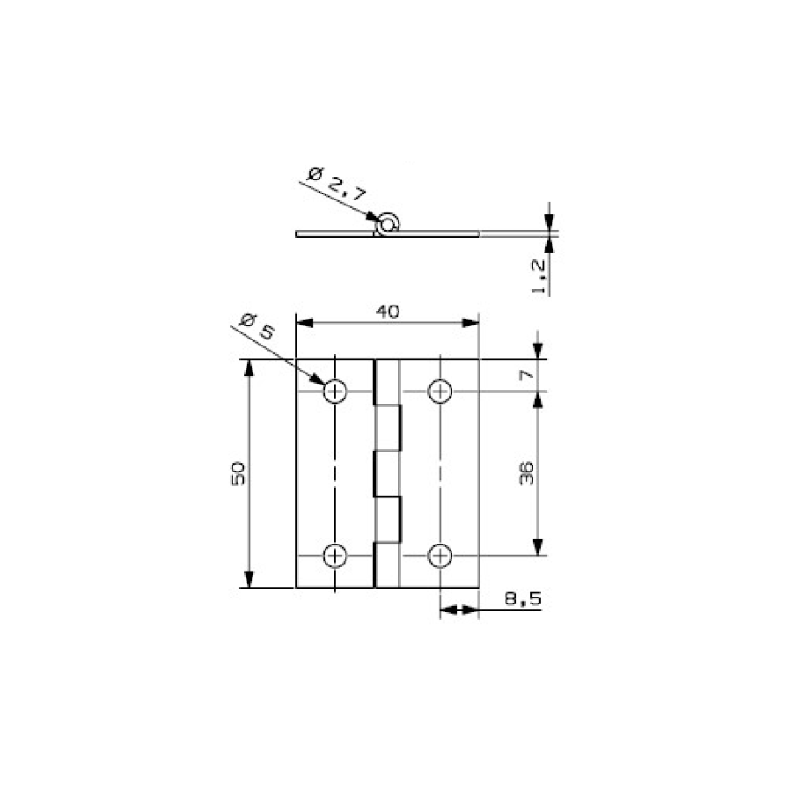 Hinge Butt 50X31X1,4 Steal zinc plated 4 holes