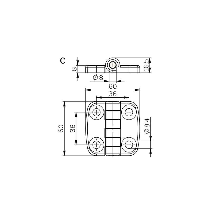Hinge External 60x60mm 180° AISI 316