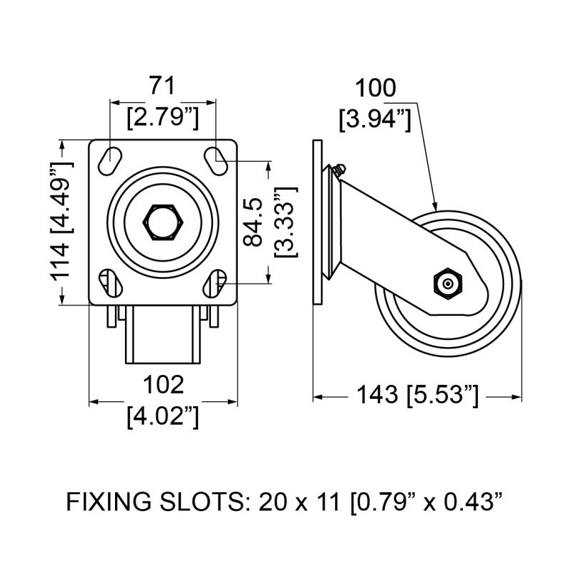 100mm Pöörlev ratas Piduriga Kummist Must/Must