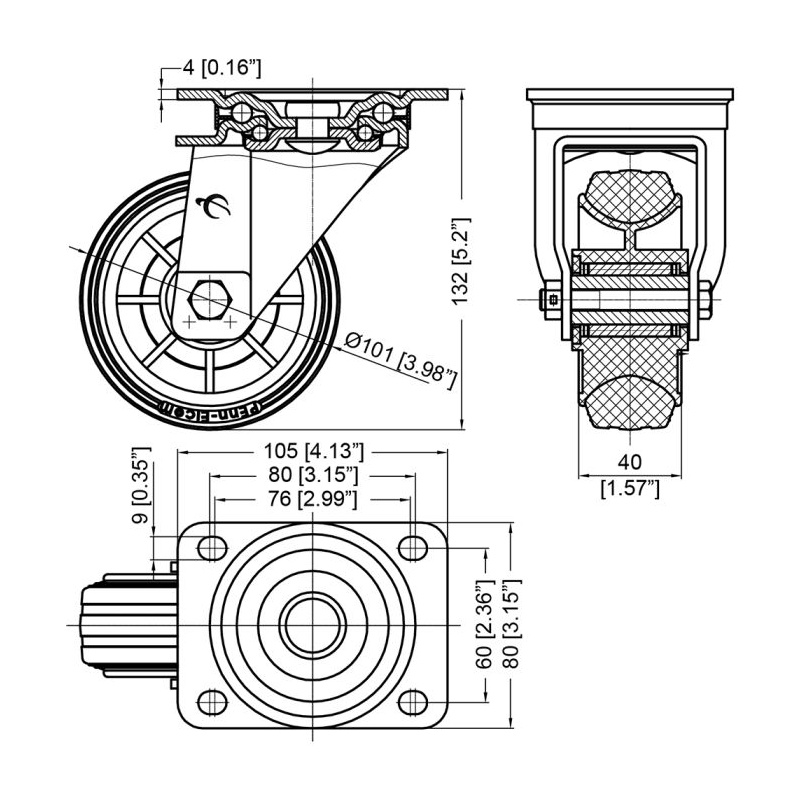 100mm Pöörlev ratas Eriti tugev Automaatne Kummist Tsink/Sinine