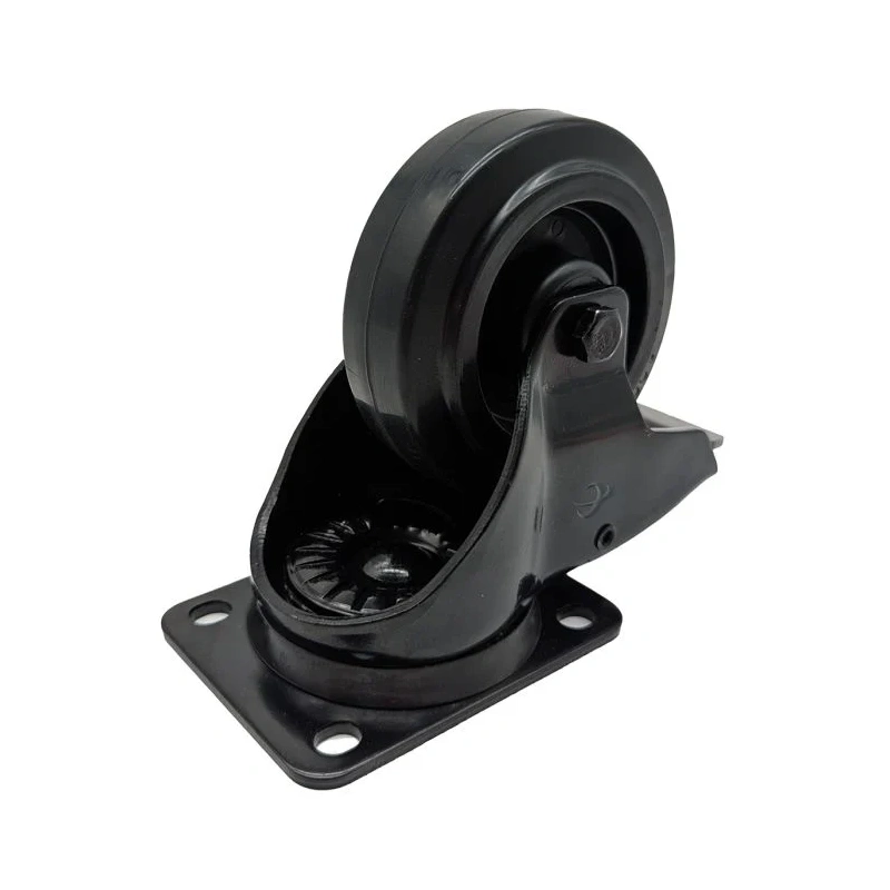 100mm Pöörlev ratas Piduriga Kummist Must/Must