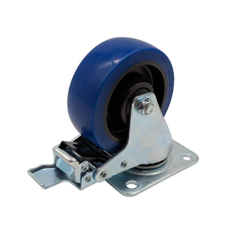 100mm Pöörlev ratas Piduriga Eriti tugev Kummist Tsink/Sinine