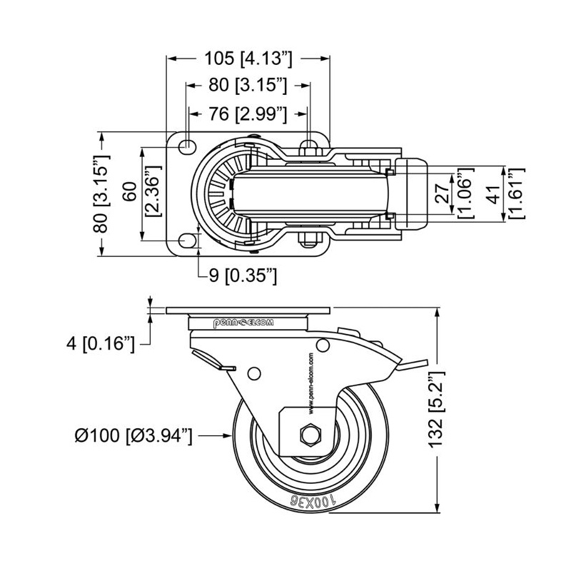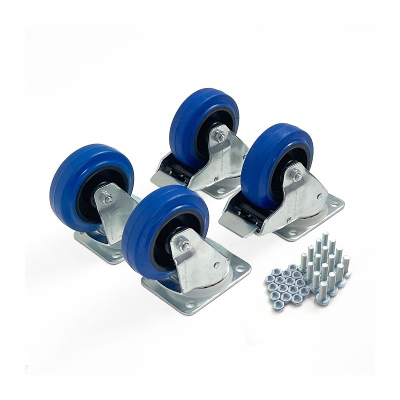 100mm Pöörlev ratas Piduriga Eriti tugev Täielik lukustus Kummist Tsink/Sinine