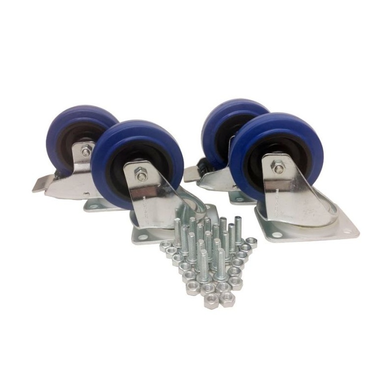100mm Pöörlev ratas Piduriga Täielik lukustus Tsink/Sinine