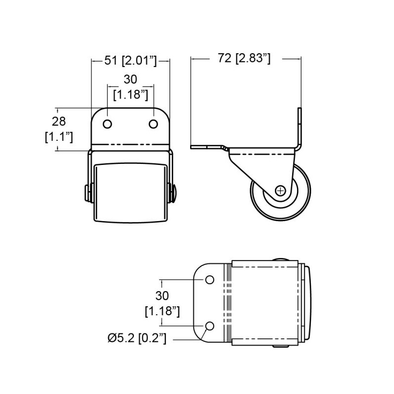 75mm Ratas servale Eriti tugev Valutsink Tsink/Must