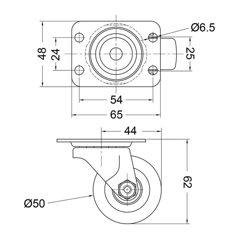50mm Pöörlev ratas Piduriga Tsink/Hall