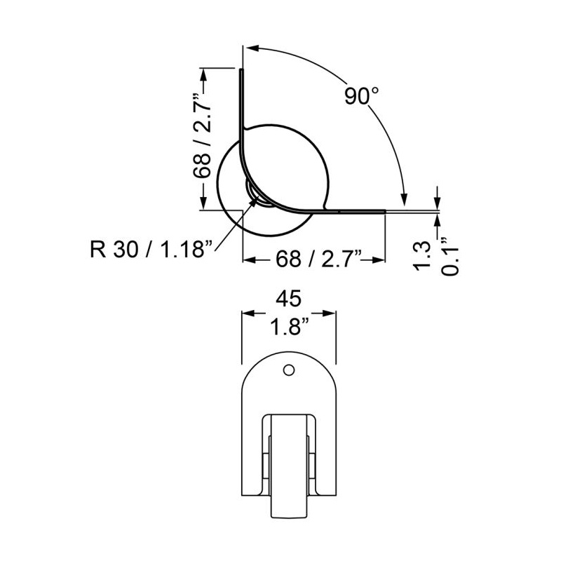 50mm Ratas servale Süvistatud Kumer raadius Must