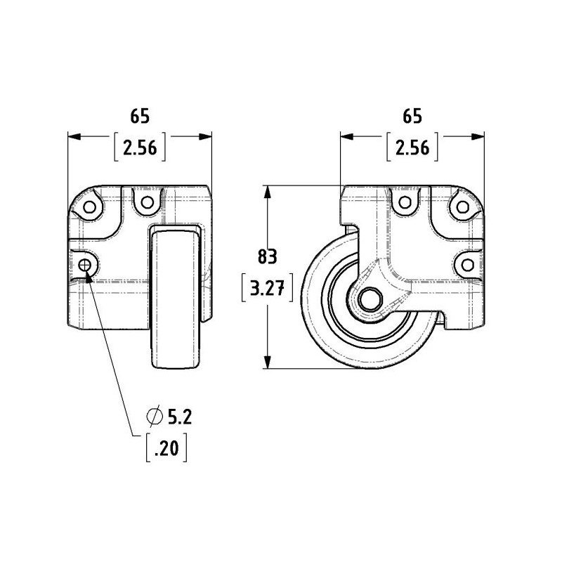 65mm Ratas nurgale Alumiinium Must N-Case 2 kohvrile