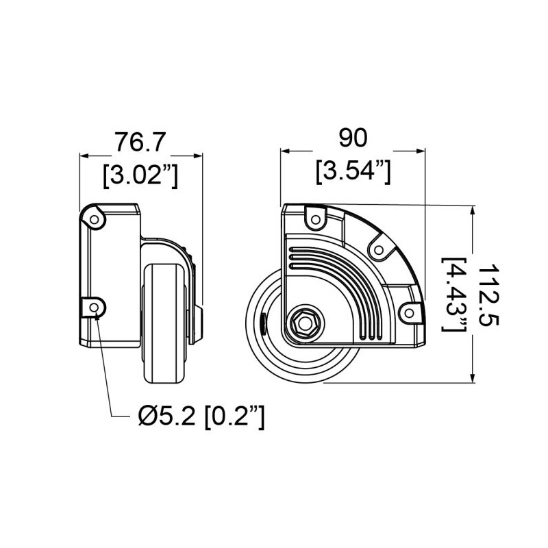 75mm Ratas nurgale Eriti tugev Väliratas Must/Must