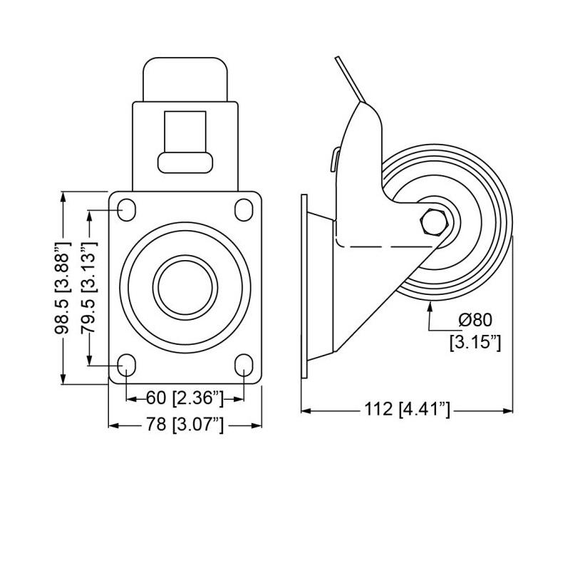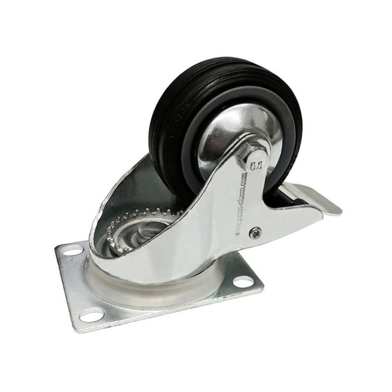 80mm Pöörlev ratas Piduriga Kummist Tsink/Must