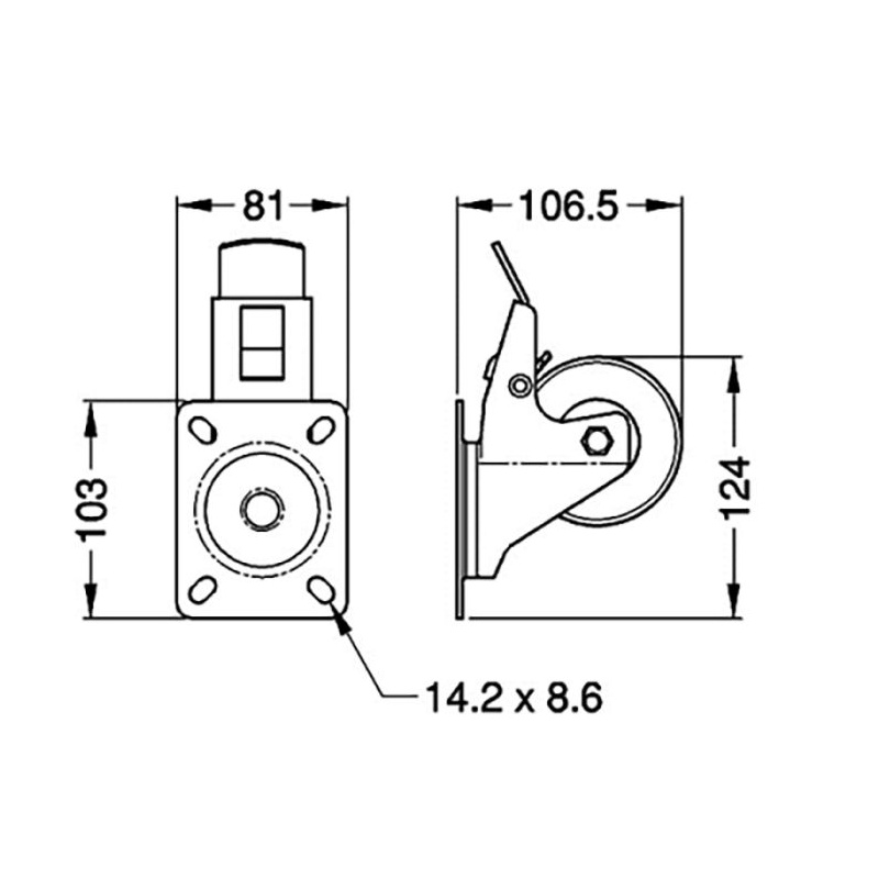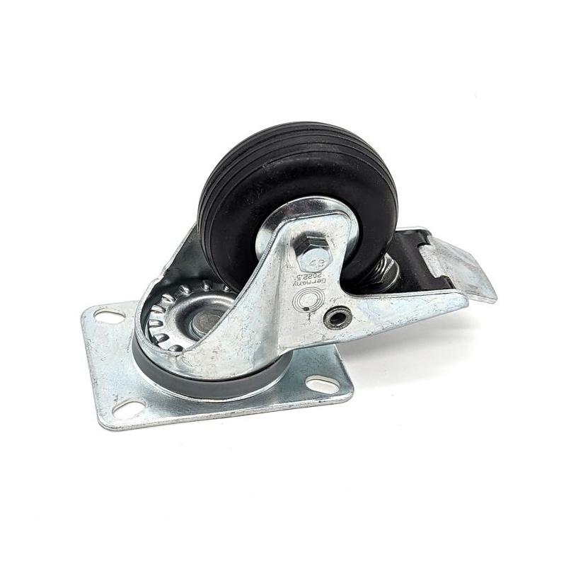 80mm Pöörlev ratas Piduriga Kummist Tsink/Must
