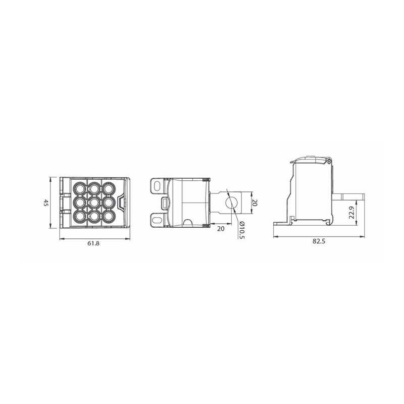 DBP 120 In Pin M8 250A Out 9x10mm2 1000VAC/1500VDC distribution block
