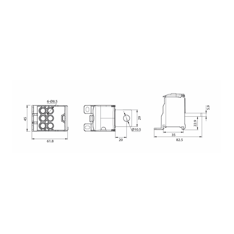 DBP 50 In Pin M6 125A Out 9x6mm2 1000VAC/1500VDC distribution block