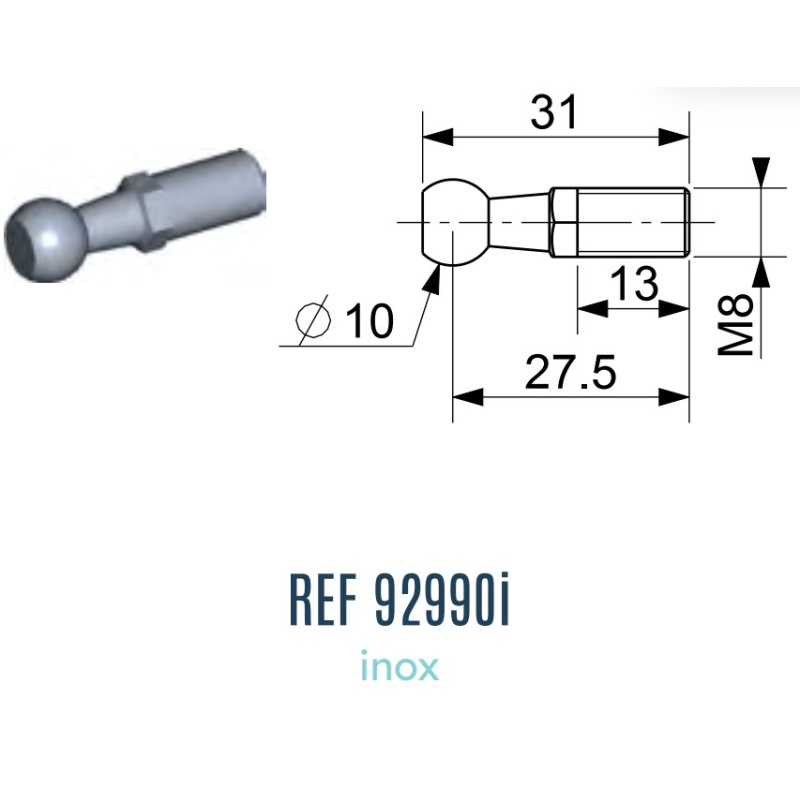 Roostevaba Kolvi diameeter 10mm, Otsad M8