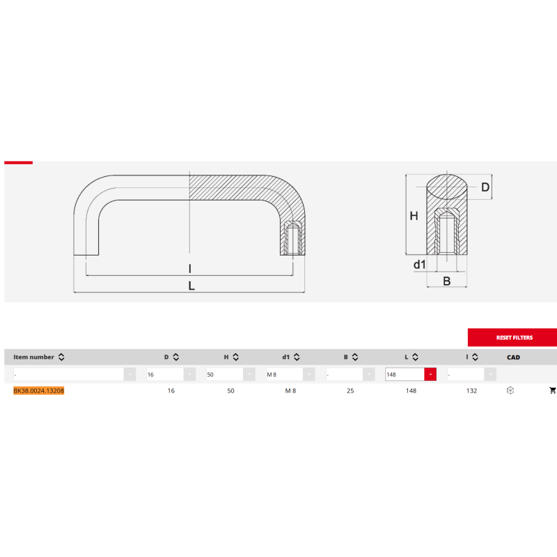 Käepide plastik L=132mm M8 must