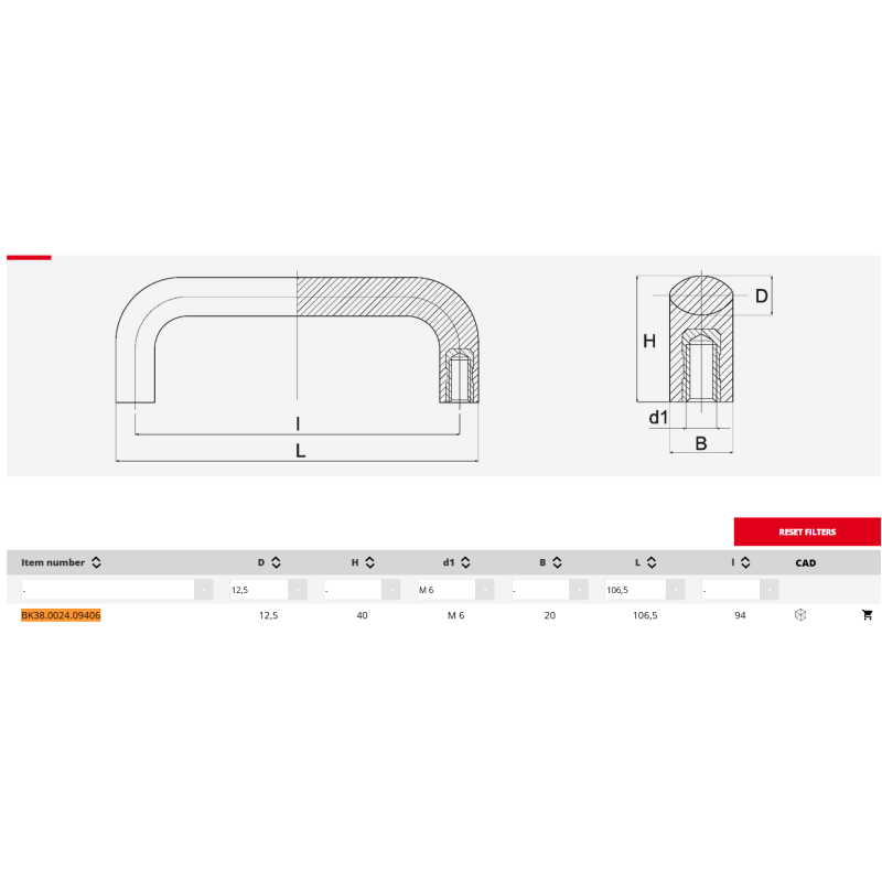 Grab Handle Plastic Black L=94 Inside mounting M6