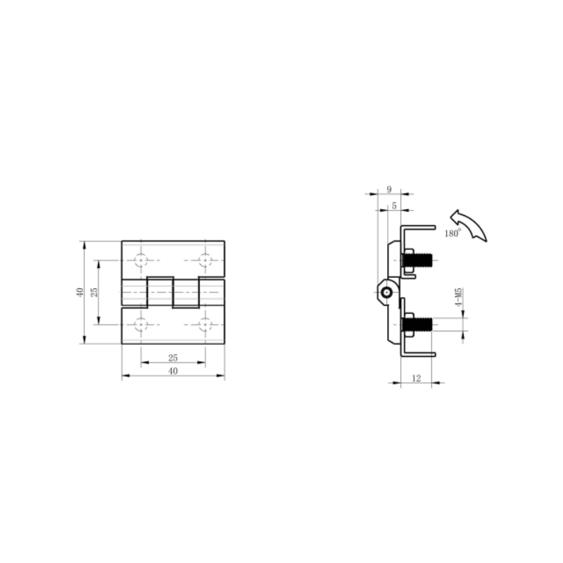 Hing 40x40x9 kroomitud plated keermestatud poldid 4xM5