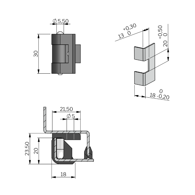 Hing corner PA6 RAL 7035