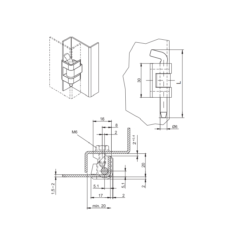 Hing Corner 180° avatav plekile 1,8-2,25mm must värvitud