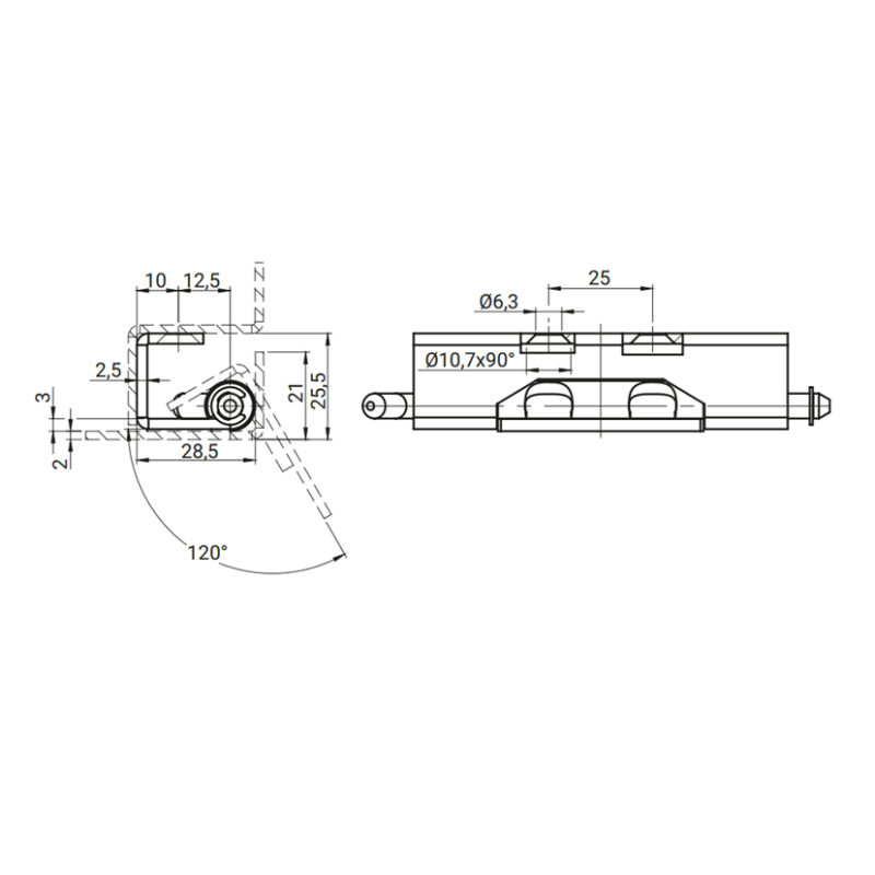 KKL 2x IP00 L-tüüpi vertikaal seadmeklemmid latile, keskühendus