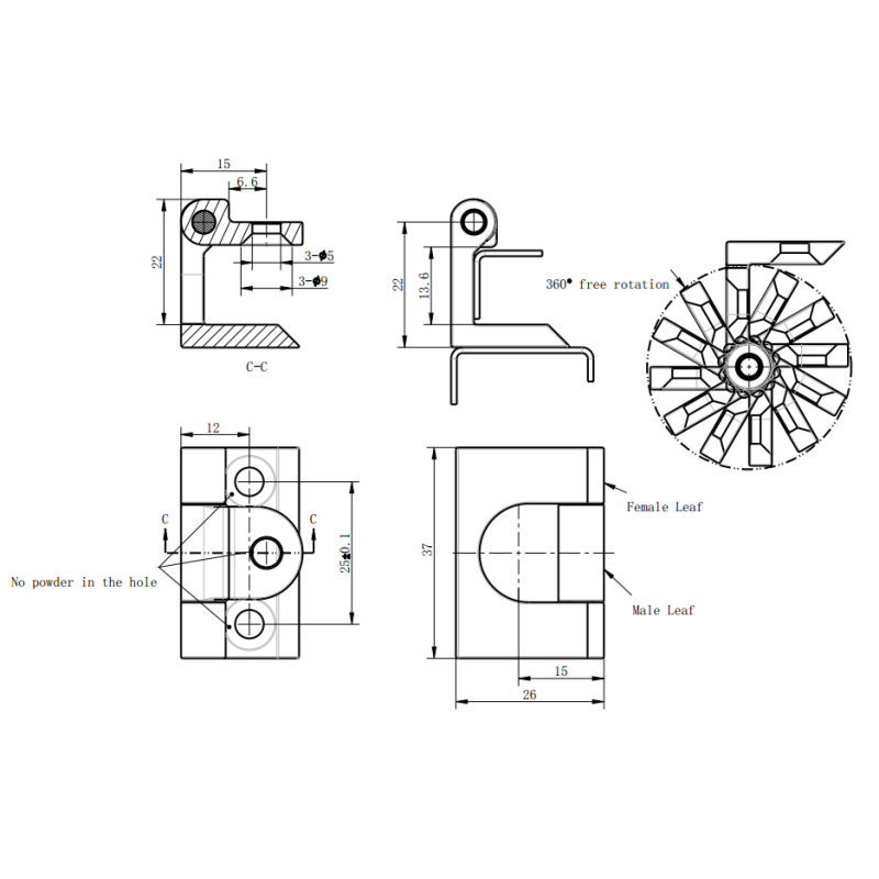 Hing peidetav 120° tugev