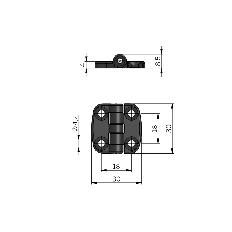 Hing väline 30x30 mm 180° avatav 4 ava