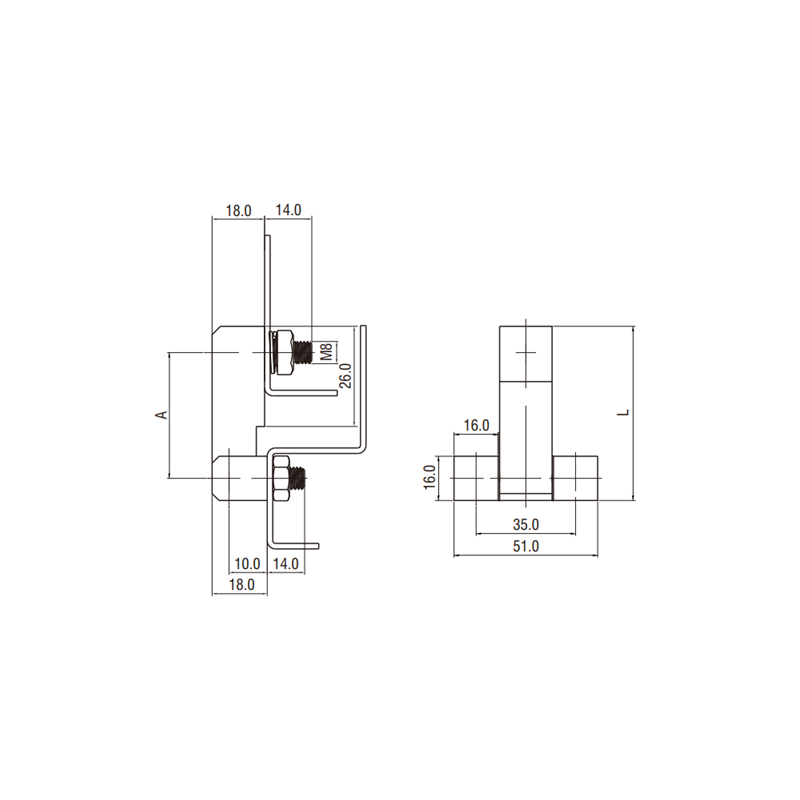 KKL 2x IP00 L-tüüpi vertikaal seadmeklemmid latile, keskühendus