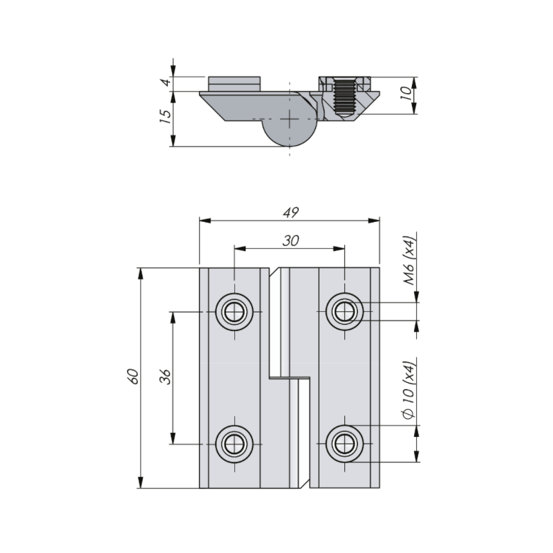 Hing väline bolt-on 14.14 M8 AISI 304 seibiteta 323016