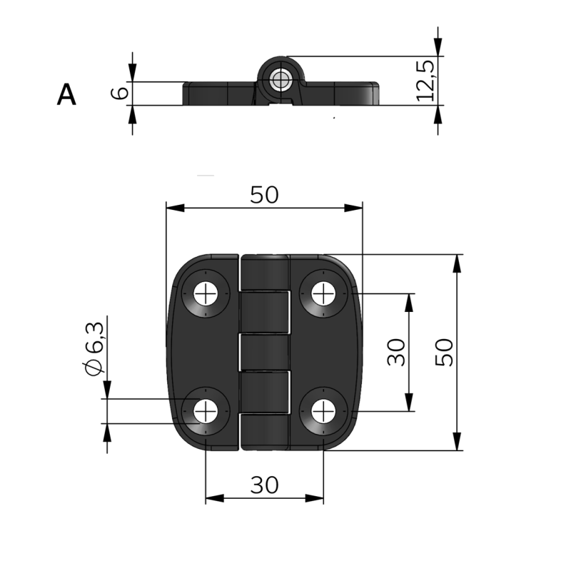 Hinge External 30x30 Zinc die-cast Black