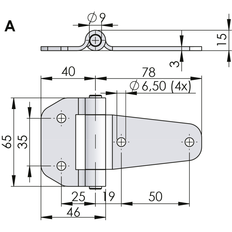 Hing peidetav roostevaba 90mm + 2 SS BOLT M6x12 DIN 965 A2