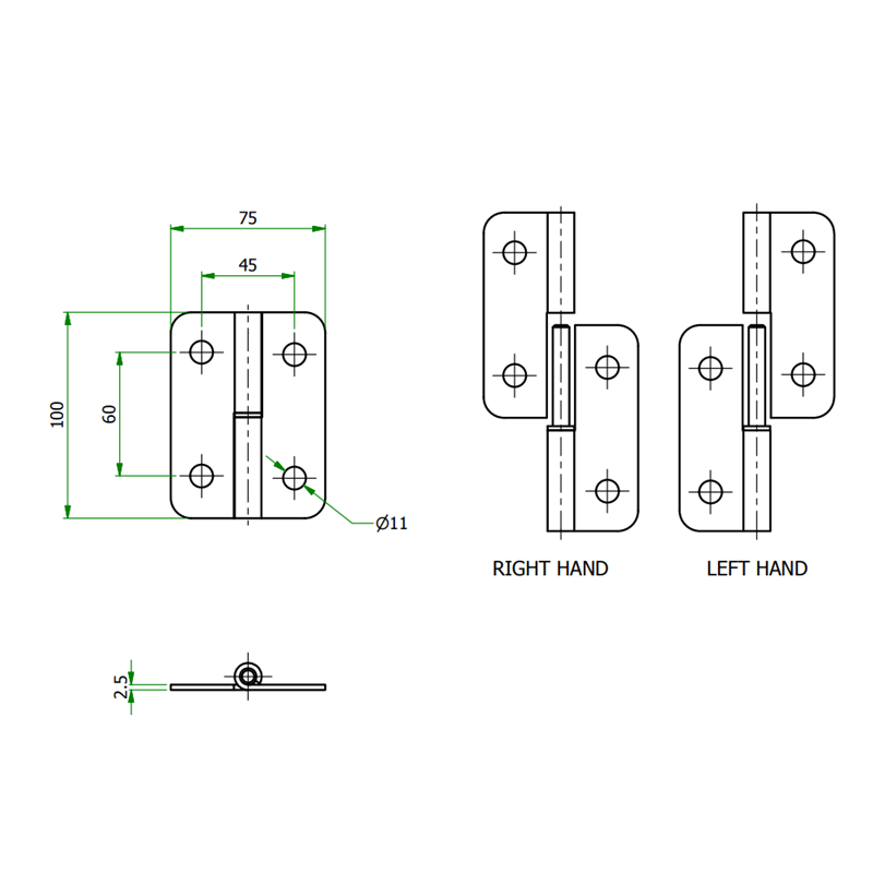 Hinge Lift-off Black 100x75x2.5 180° 4 holes RH