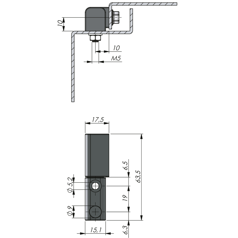 Hing väline tõstetav 7.5/10.5 must värvitud avatav 180°