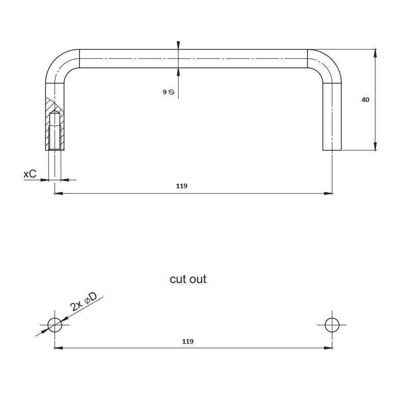 Grab Handle Plastic Black L=94 Inside mounting M6