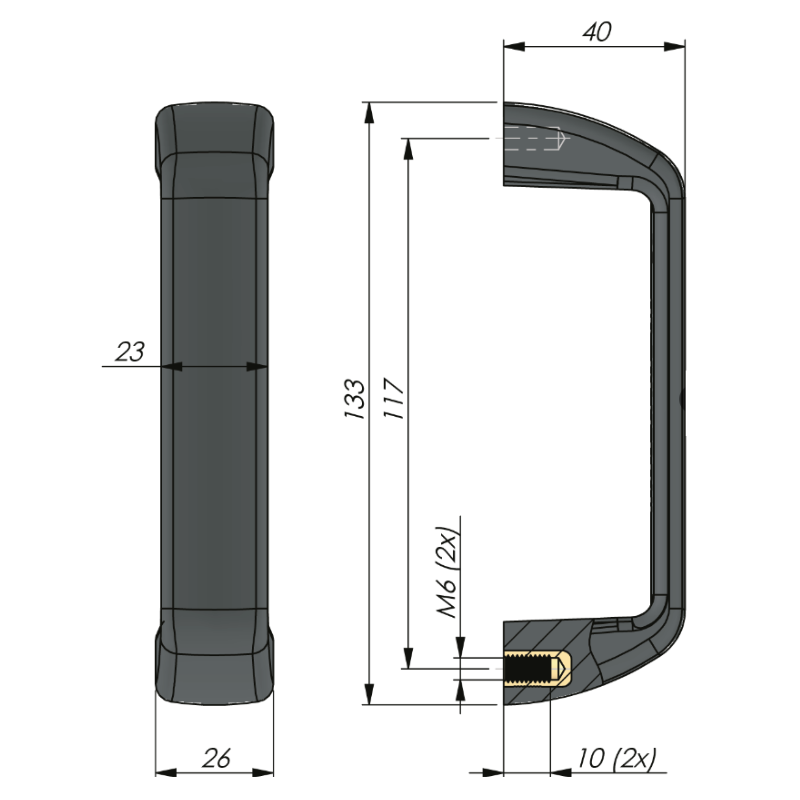 Grab Handle Plastic Black L=132 Inside mounting M8