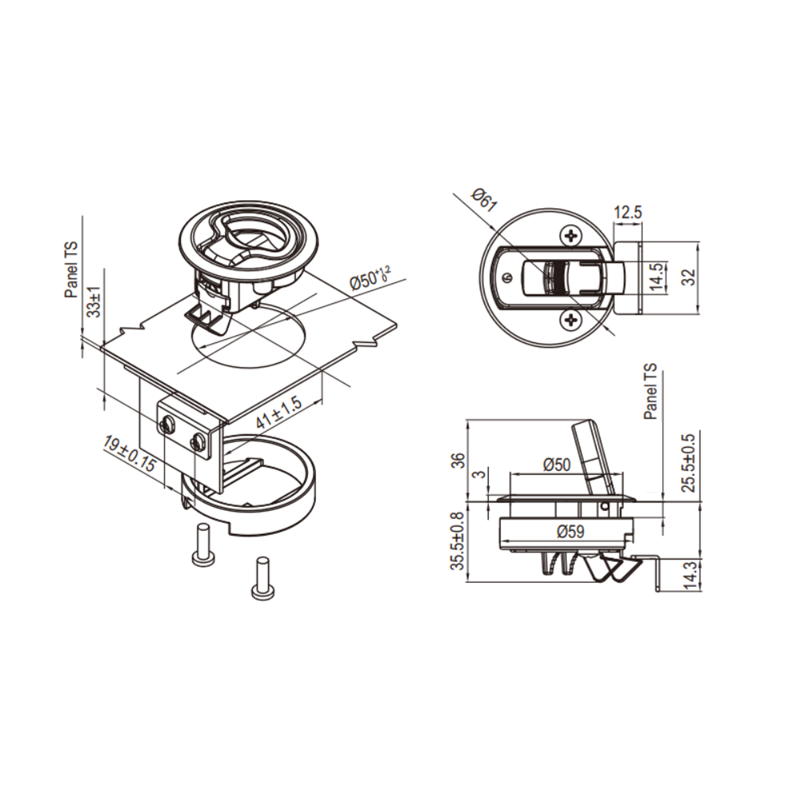 Flush Grab handle 140x36mm 0.8-1.2mm Mounting hole 132x30.7