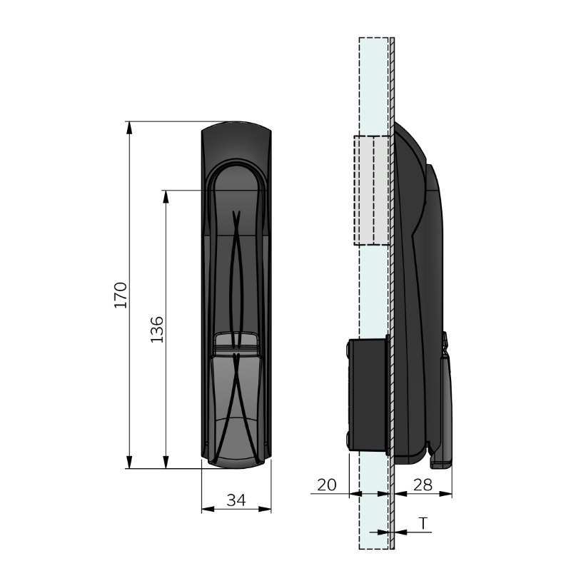 Swing handle Vision Triangular 8 FOR Cam T=1,6-2,5mm