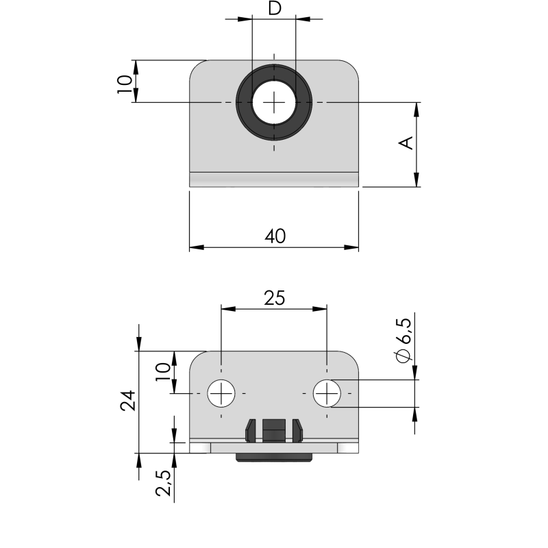 Rod Guide Steel zinc plated + bushing A=20 for Ø8 rod