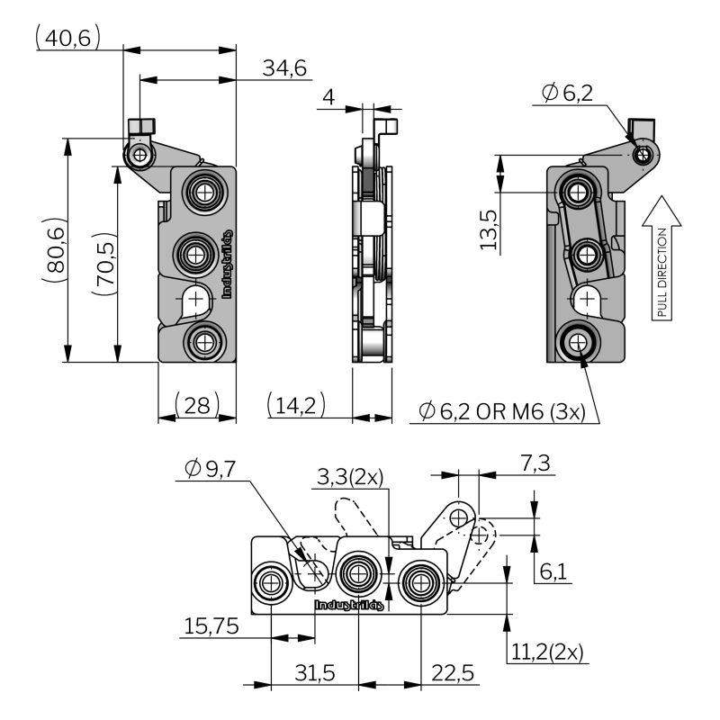 Rotary for 9.4mm striker Single stage M6 threaded Inline Perpendicular Pull RIGHT No striker
