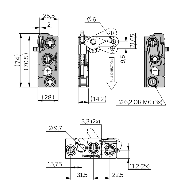 Rotary for 9.4mm striker Single stage M6 threaded Inline Perpendicular Pull RIGHT No striker