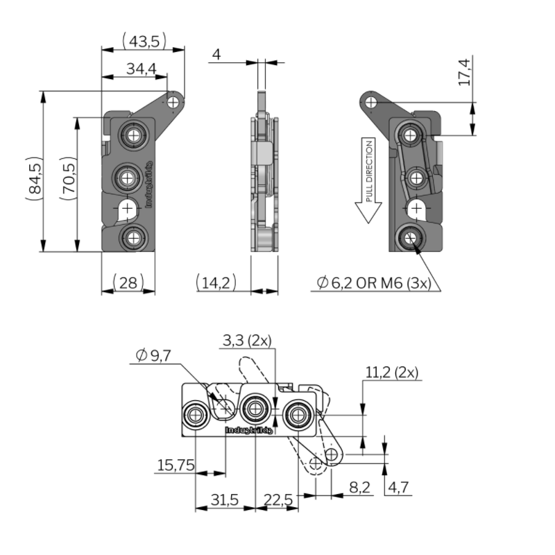 Rotary for 9.4mm striker Single stage M6 threaded Offset Push RIGHT No striker