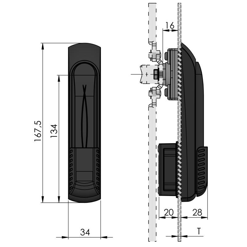 Swing handle Vision RC2 Profile cylinder T=1,6-2,5mm IP66 For cam