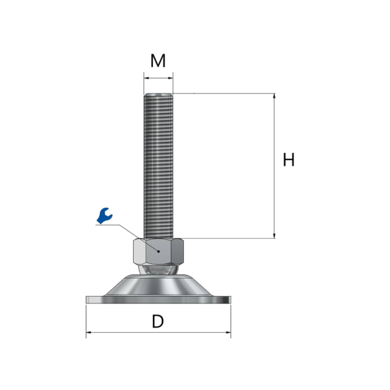 Taldmik D=30 H=30 M8 teras/plastik reguleeritav