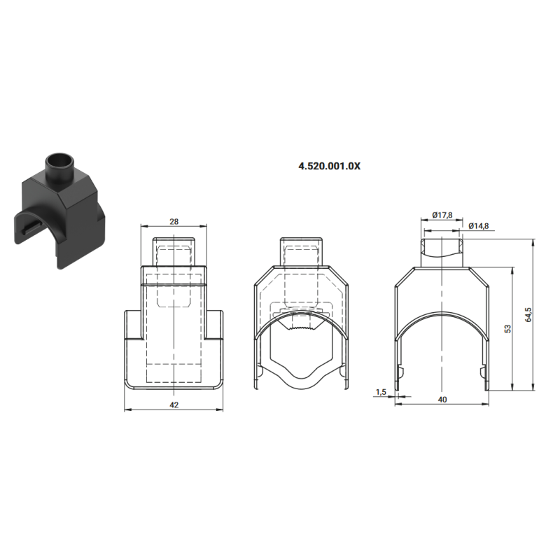 KKL 2x IP00 L-tüüpi vertikaal seadmeklemmid latile, põhiühendus