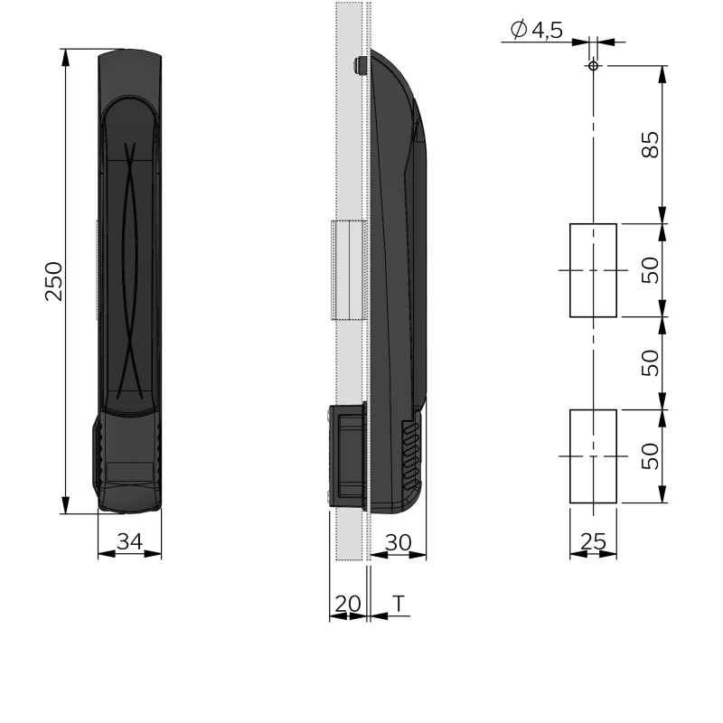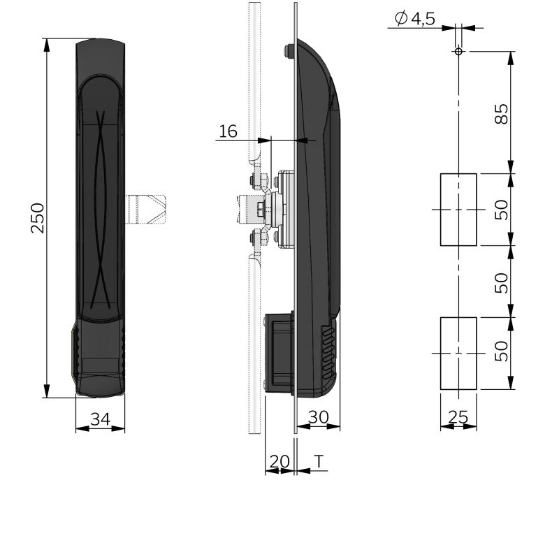 Swing handle Vision Triangular 8 FOR Cam T=1,6-2,5mm