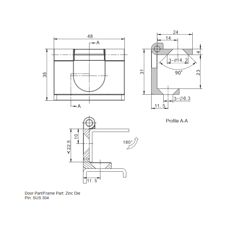 Ārējā eņģe Zamak 5 RAL 9005