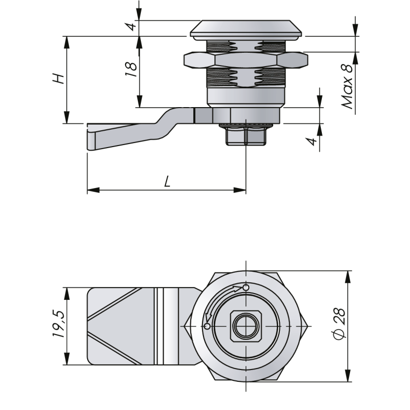 Slēdzene QTL 28.4.18 Triangular 10 AISI 316 mēlīte 00.45 IP65
