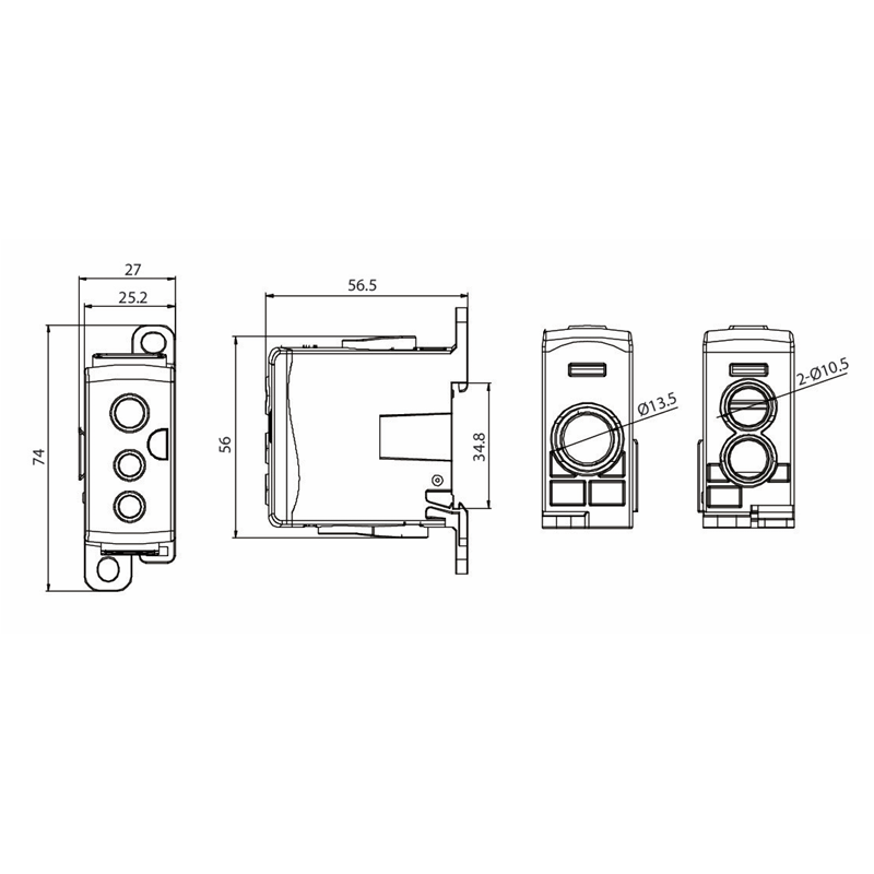 TVB 25 sadalošs spaiļu bloks 101A In 2.5-25mm2 Out 3x1.5-16+3x1.5-10mm2 1000VAC/1500VDC
